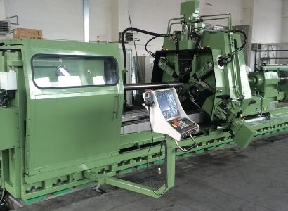 High-precision horizontal machine for flow-forming with three servo axes of the roller carrier, symmetrically radially arranged on the support. The fourth servo axis is for axial movement of the support. It is suitable for processing various materials such as steel and aluminium alloys.